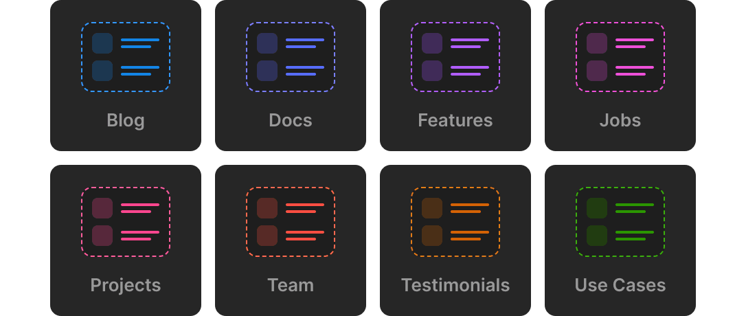 Everything you need to manage content for your blog posts, job listings, and marketing pages. Generate pages based on CMS entries and easily update content across your site.