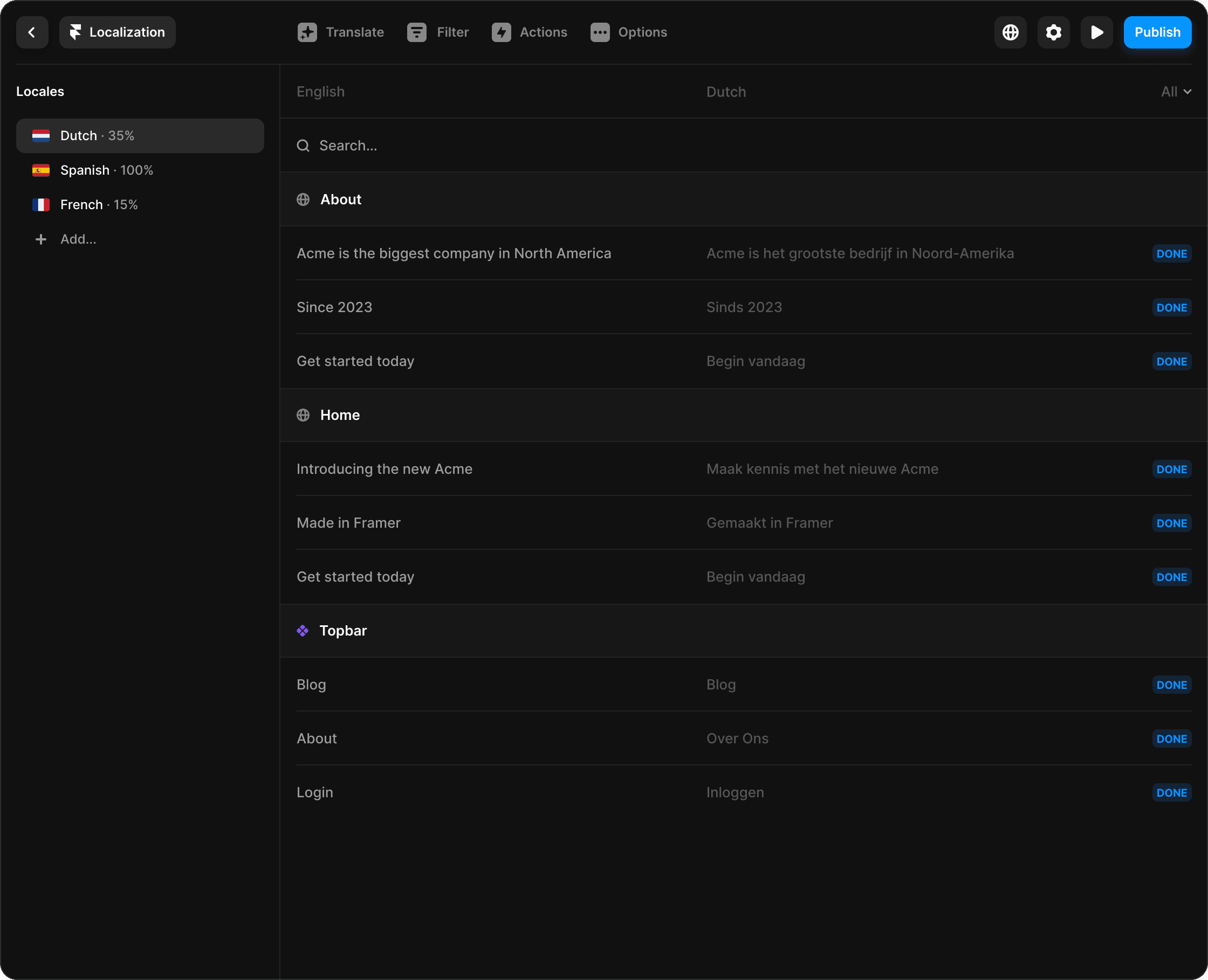 Effortlessly tailor your website to many languages and regions with everything from Localized text and images to adaptive designs & content per Locale.