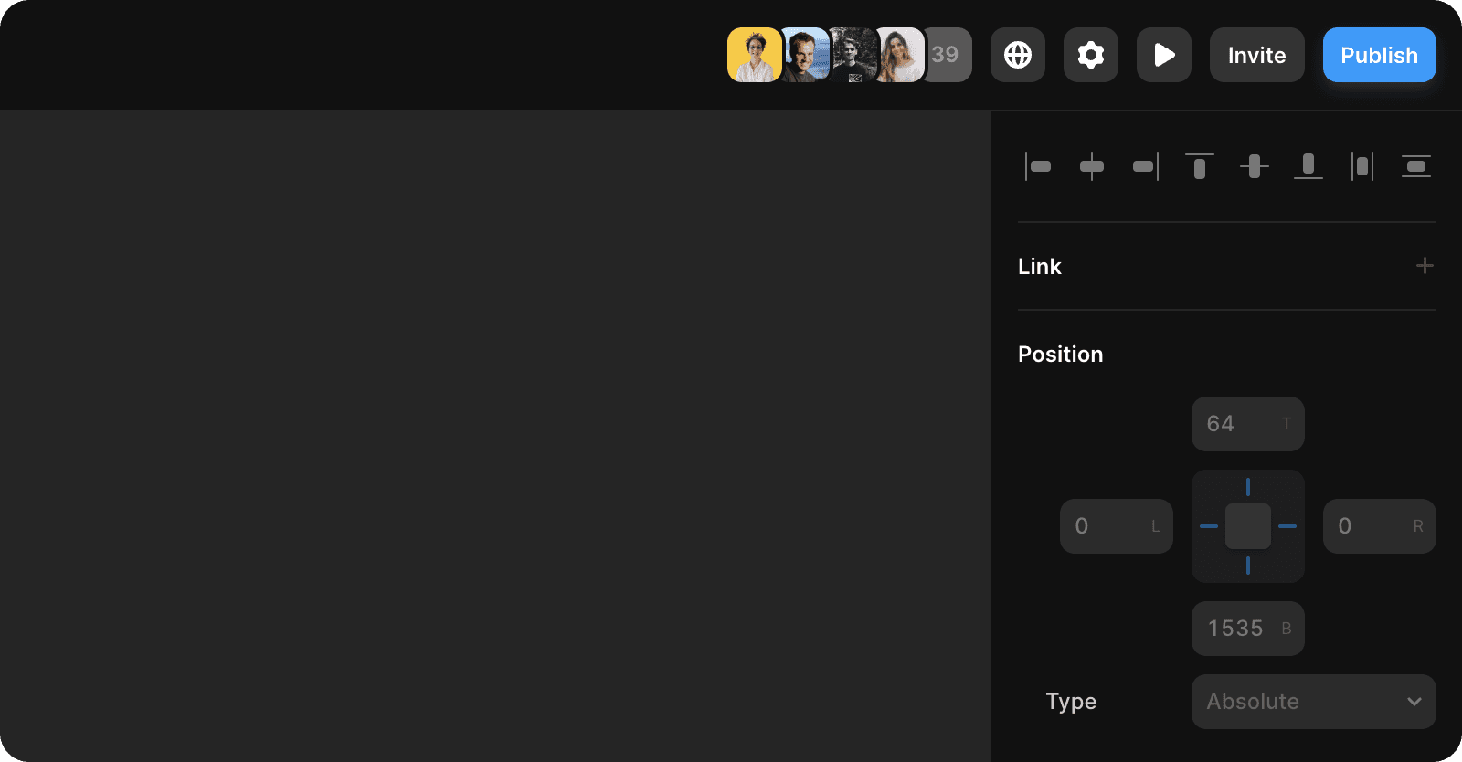 You can collaborate on the canvas in realtime and design pages together with you entire team.